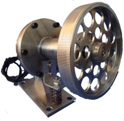 我們研制的皮帶速度監(jiān)測保護系統(tǒng)探頭能克服以上缺點。它的基本工作原理是:利用外接觸輪將皮帶的線速度轉(zhuǎn)換成角速度(將皮帶的直線運動速度變成接觸輪的轉(zhuǎn)動速度),通過輪軸傳遞給電磁感應器件,將轉(zhuǎn)速的大小變成數(shù)字脈沖信號,通過電纜傳輸給監(jiān)測保護系統(tǒng)控制器,由于數(shù)字脈沖信號是以數(shù)字方式傳輸,所以不易受到交流電和幅射電磁場的干擾,由于數(shù)字信號幅度大,對其形狀沒有嚴格限制,所以受電纜電阻和電容的影響極小,傳輸幾公里都不會誤碼,這樣就確保了測量速度的準確性和可靠性。